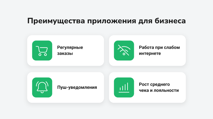 Эти примеры показывают, что через приложение клиентам проще пользоваться вашими услугами регулярно: сделать заказ повторно, быть в курсе новостей и промоакций с помощью уведомлений. Приложение всегда под рукой, работает даже при слабом интернете, поэтому клиенты приходят к вам снова, а средний чек растет. Как итог, мобильное приложение не просто дублирует сайт, а становится отдельным надежным каналом продаж и общения с клиентами.